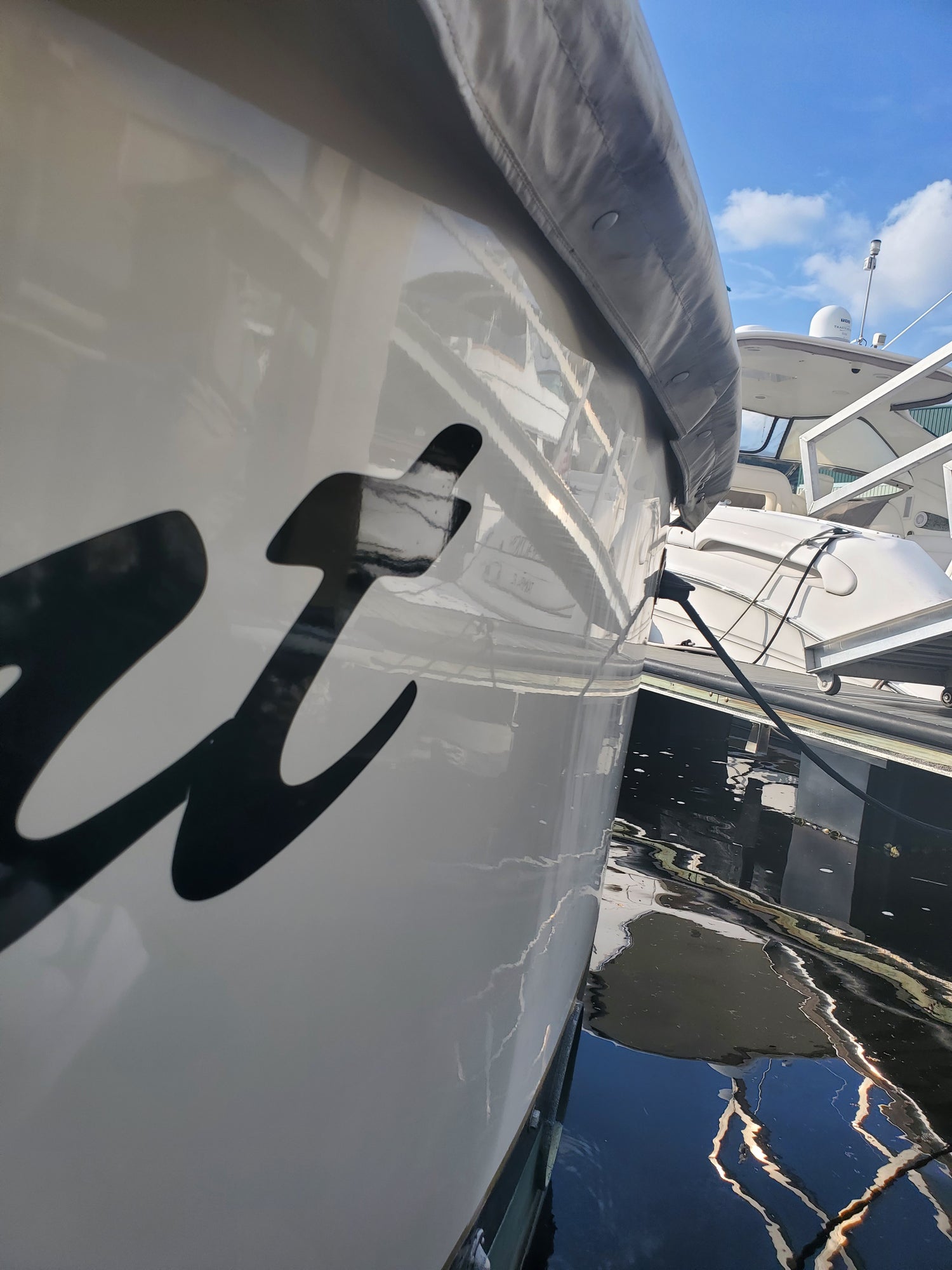 Here is a fresh detail on a SeaRay 480 after lots of bird bombs!